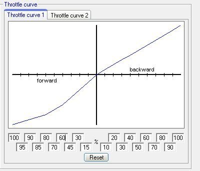 It allows you to adjust the actual throttle response to whatever you want rather than a straight line. I have done an example in the above picture - compare it to the first one. The forwards throttle has been adjusted for a curve that gives a high throttle response low down and lesser response high up. This is a personal preference thing so have a play.