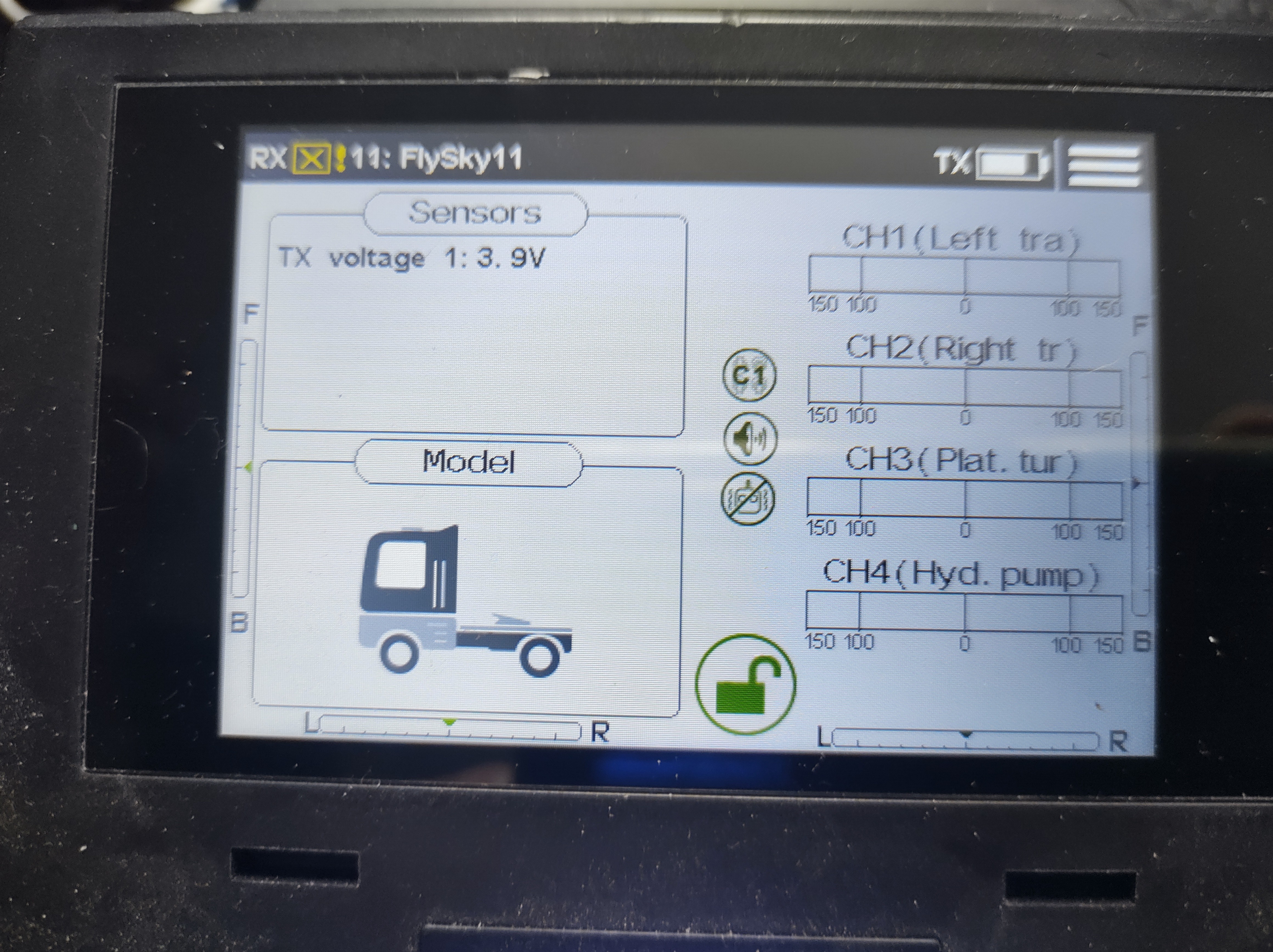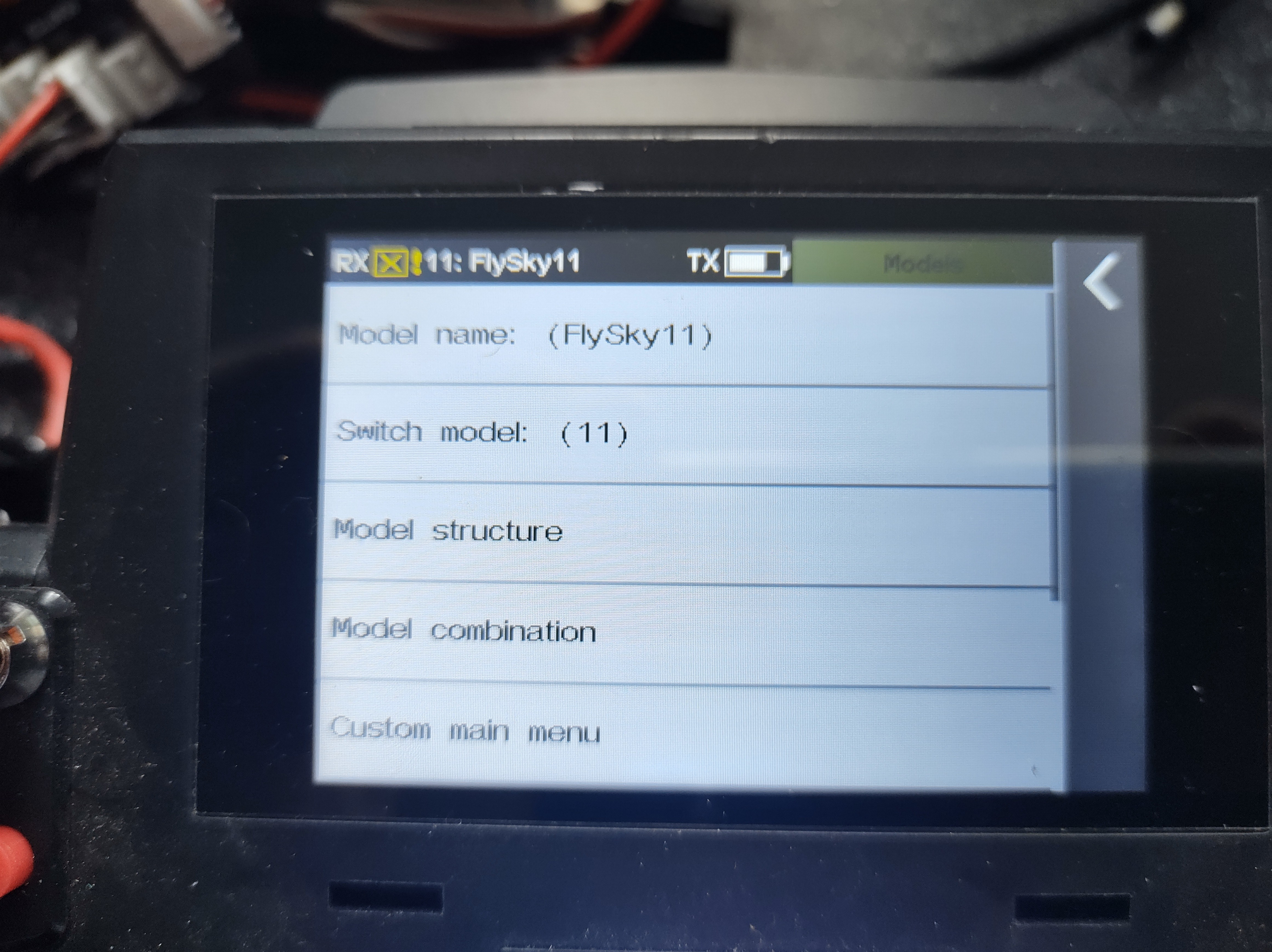 Below this is Model structure. Here you can select the model picture and choose some pre programmed names for your channels, This picture shows left and right tracks but touching the box will select or deselect the options.