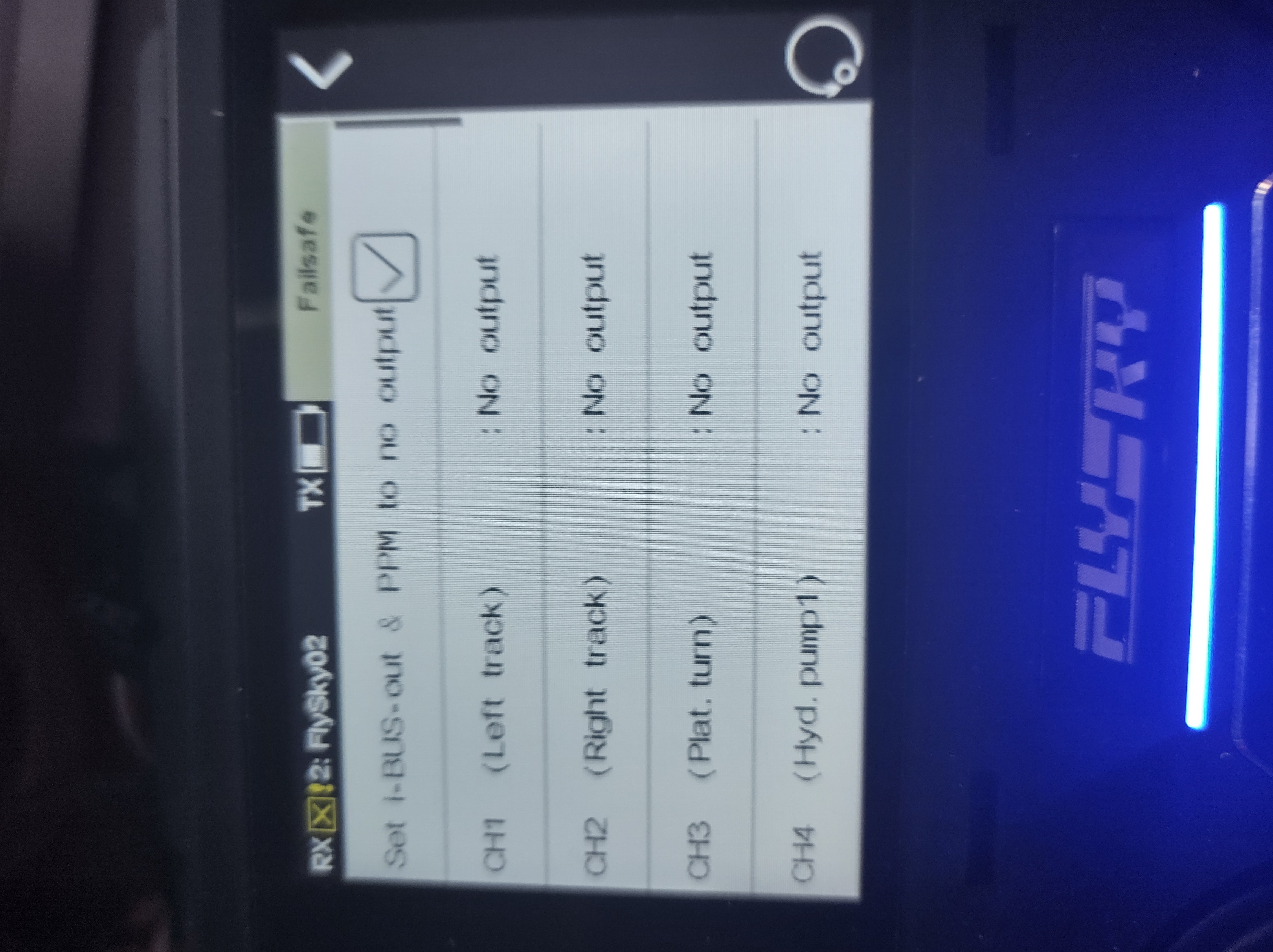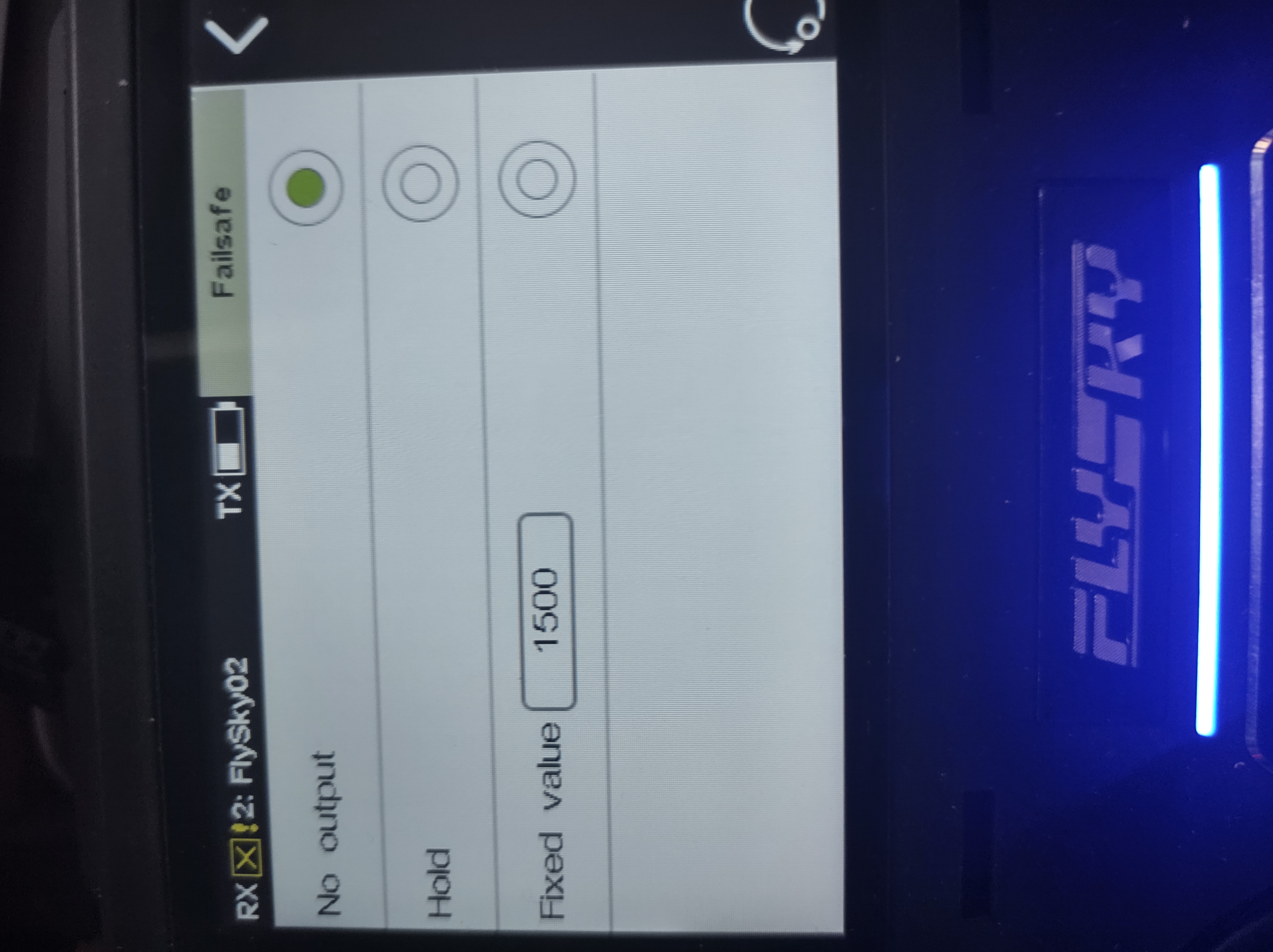 Thats it for the bind but now we need to go and set the failsafe. Back to the RX set up menu and select Failsafe . You can see the current failsafe state as in the picture below.