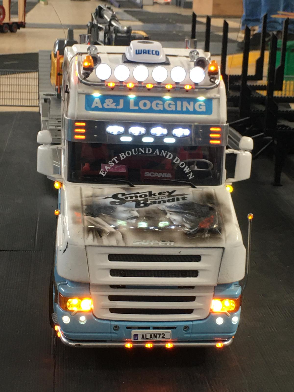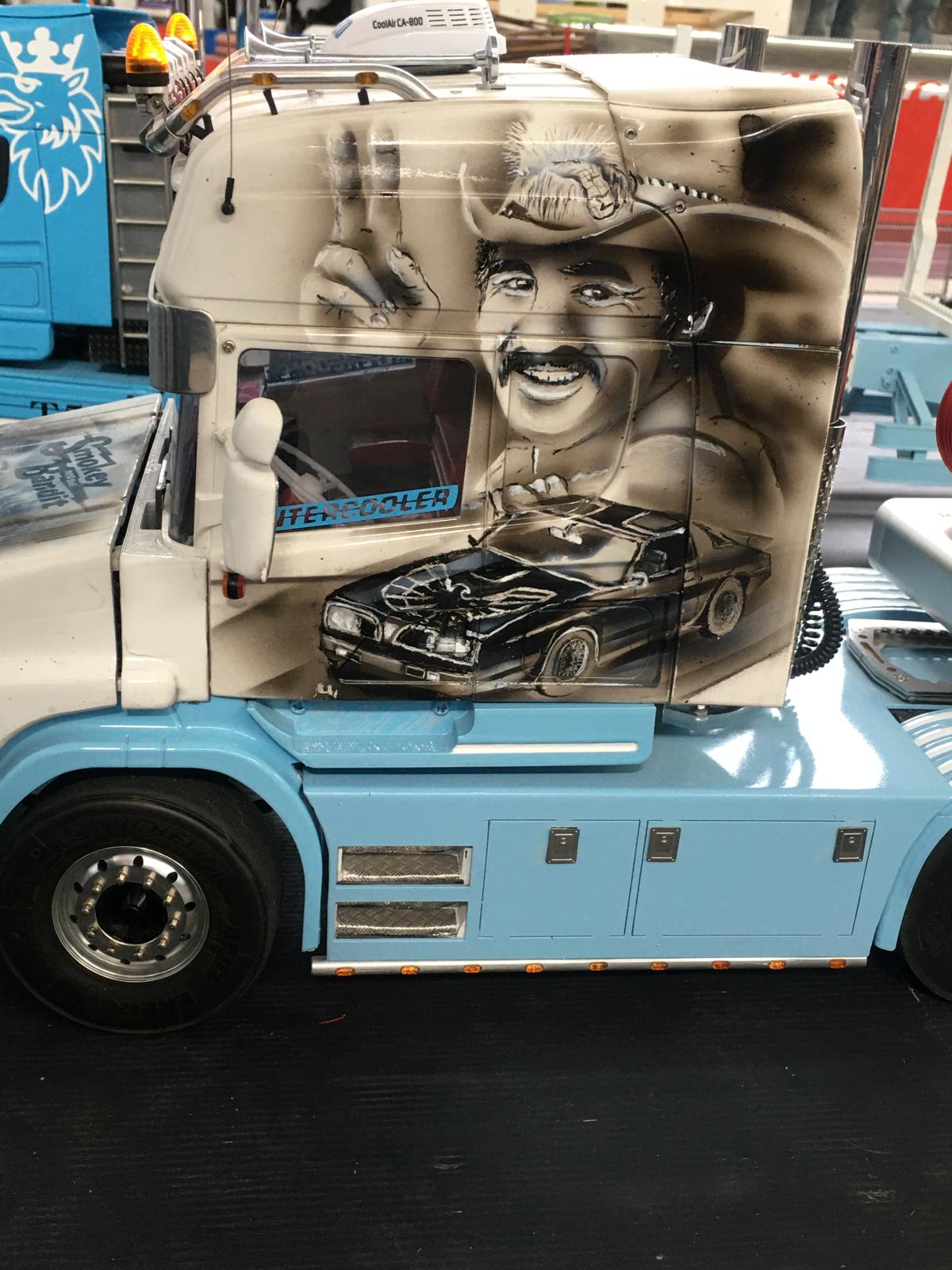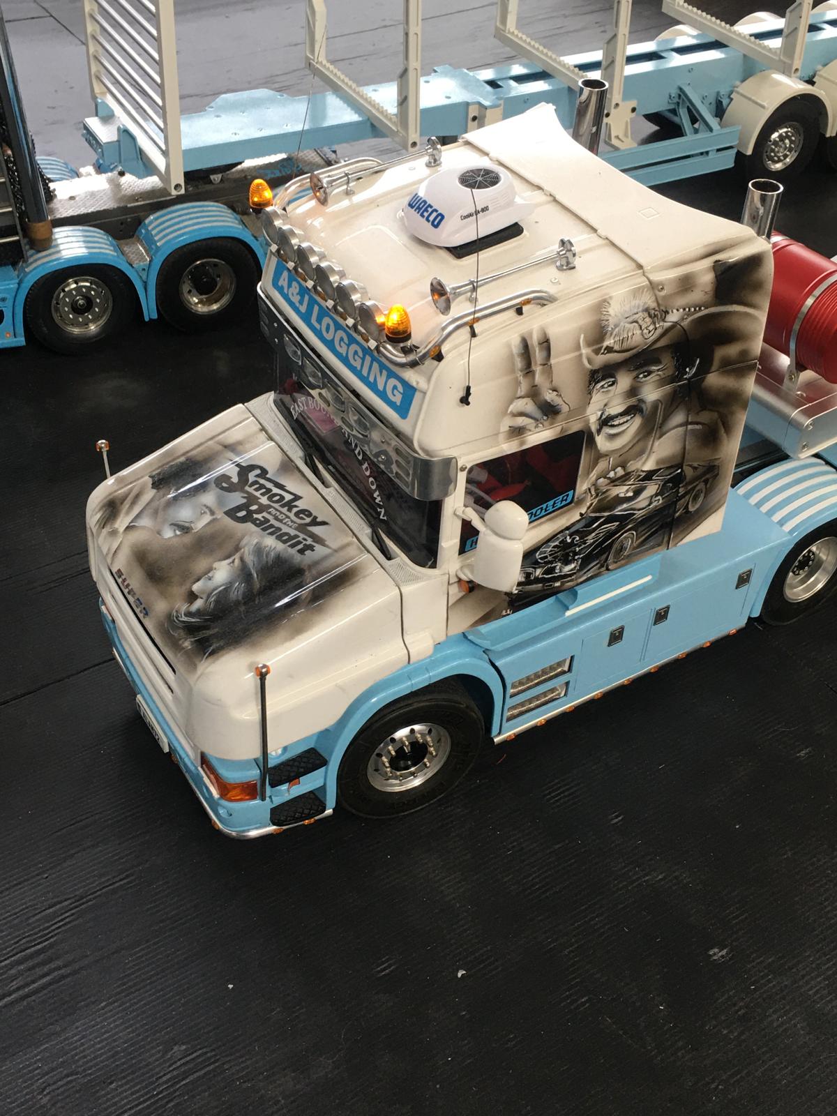 The 4 series Scania t cab with Smokey and the bandit was built by Lee lavender with a Beier sound unit with lights. It has Michelin tyres, It was purchased about 2 years ago and will never be sold.