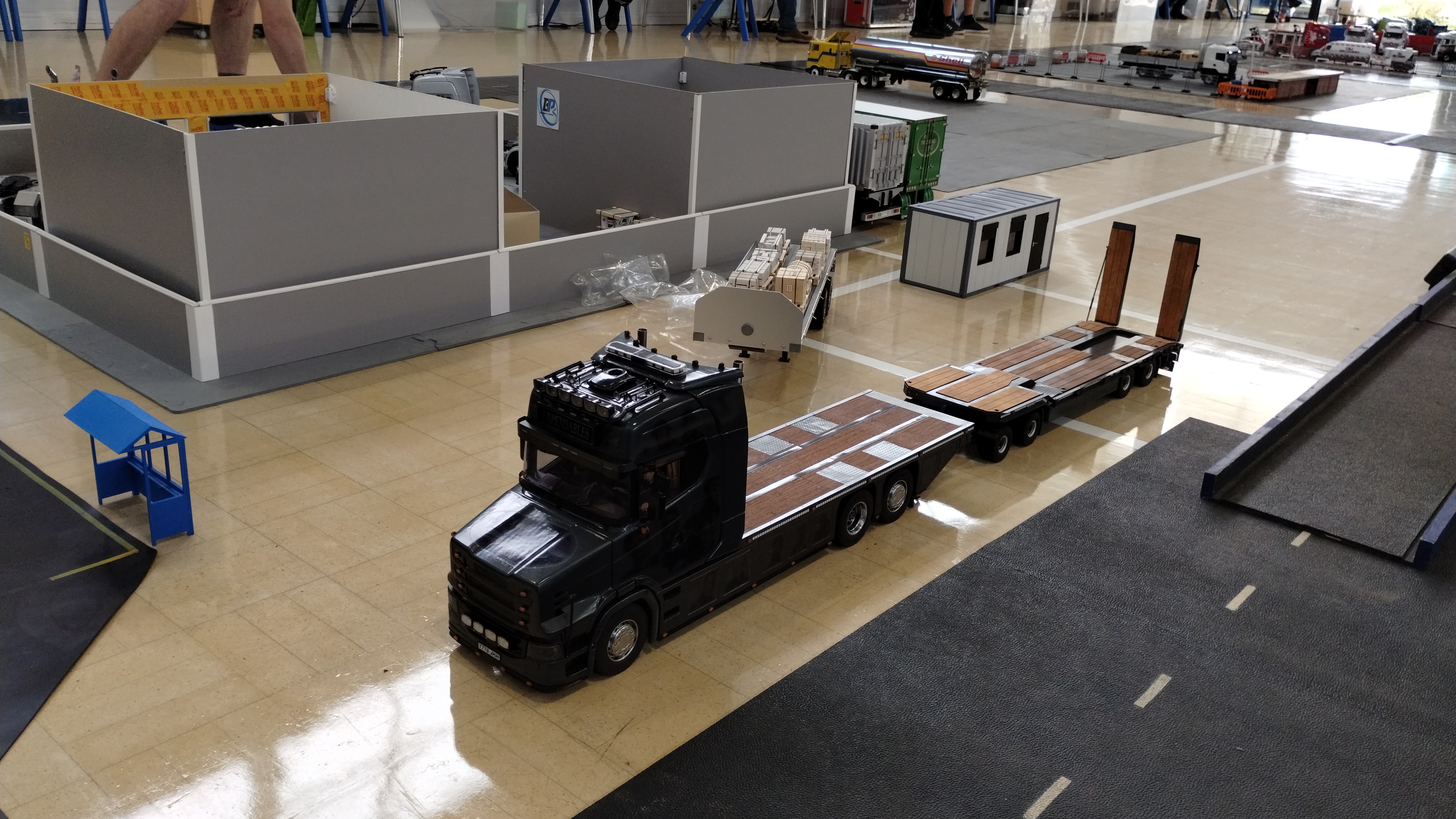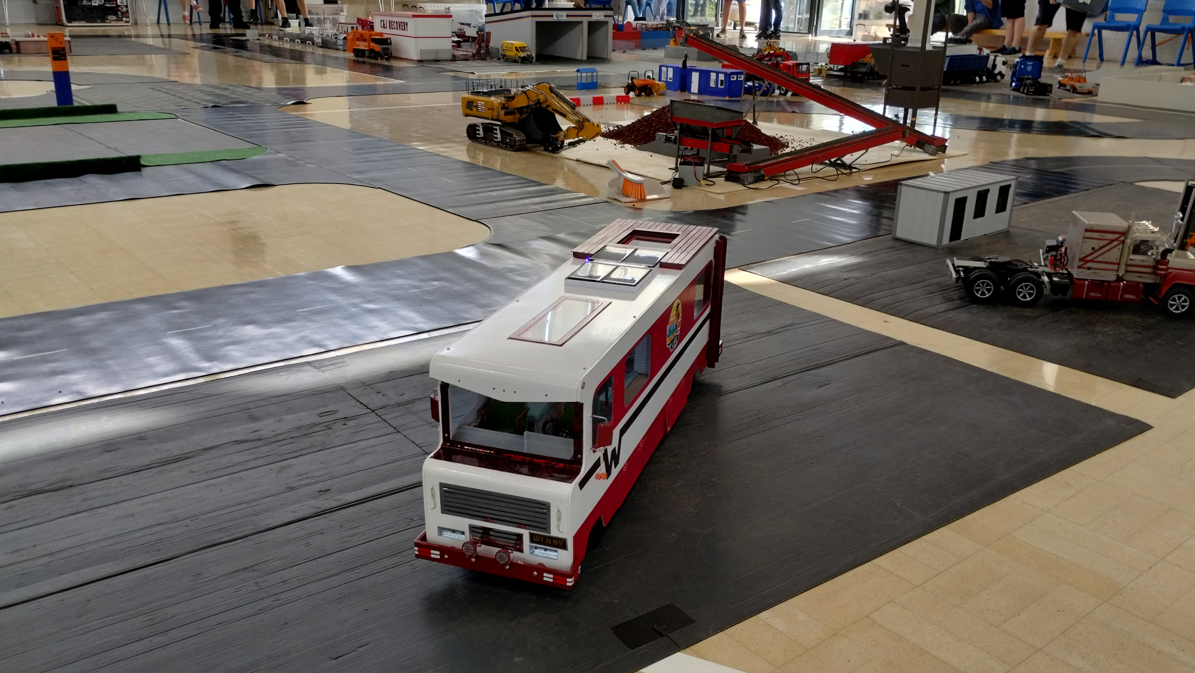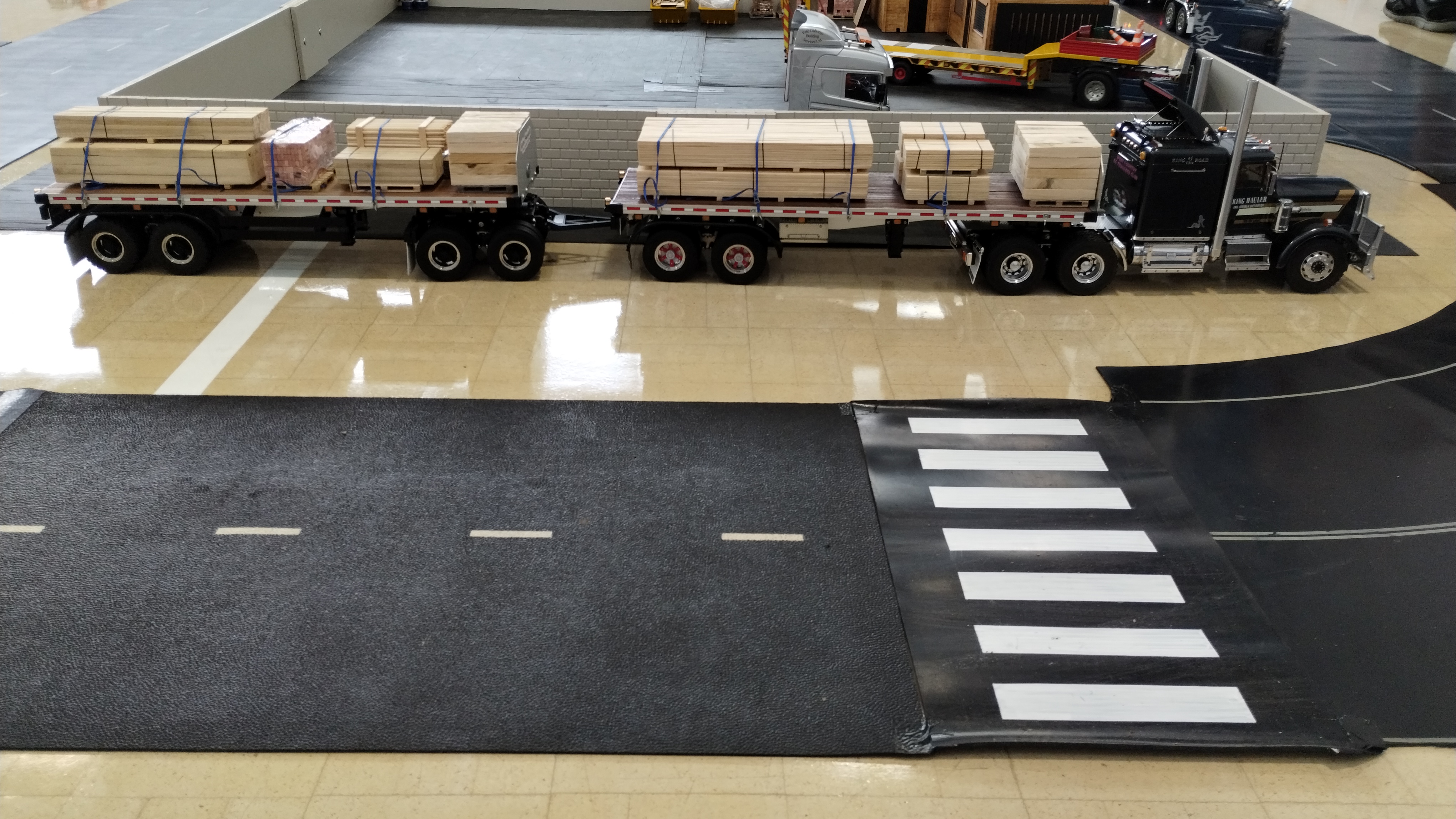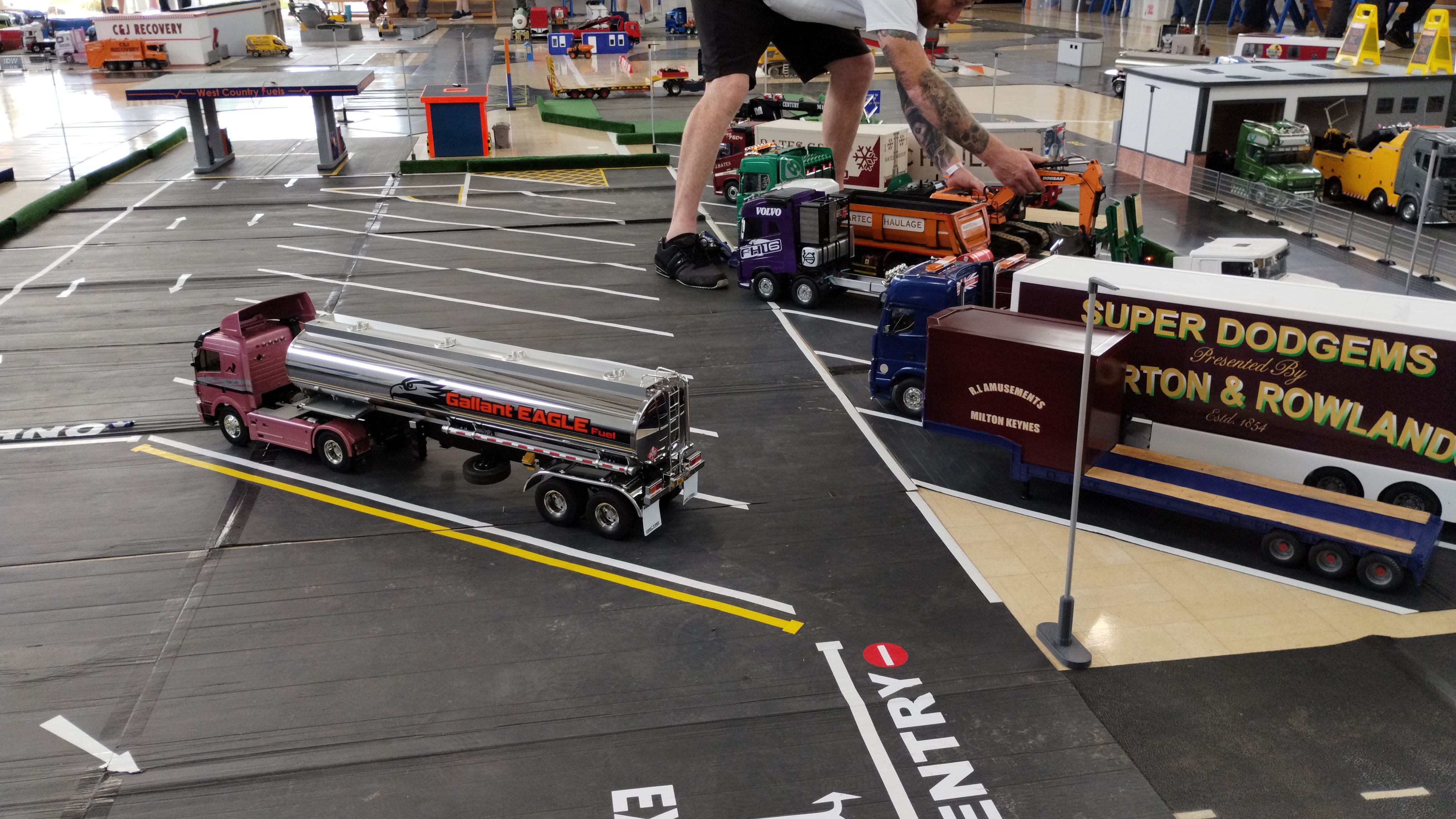 So come the summer we had a bit to do. You will have seen some of it (e.g. the new box crossroads, snack van and various bits, silo tower etc). There is more in preparation but come September our biggest concern was the state of the roadway. We booked the hall for the Saturday but could not get in until 17:00. around 6 of us arrived with the track, layed out tables and washed the track outside, dried it, repaired bits, consigned some to the skip, marked it up so we know what's what. Inventoried it ( I must attend to that) and layed it out as close as possible to the layout. Sunday was normal but it seemed to take forever to get the layout done. Suffice to say that we were all shattered!