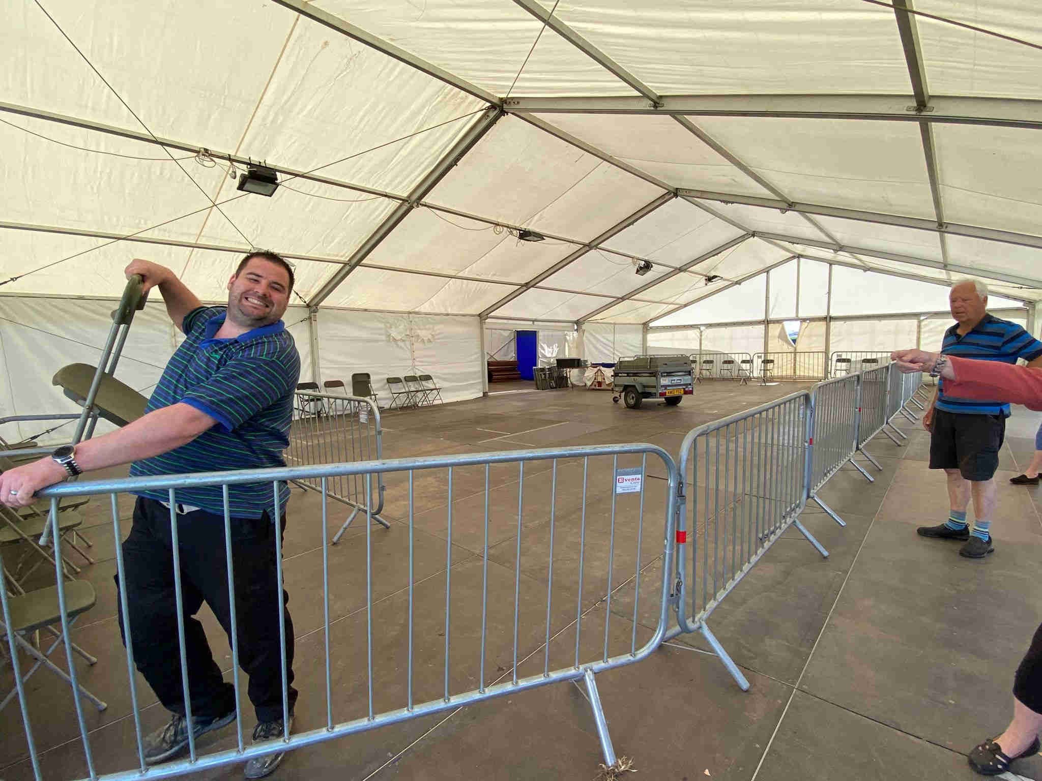 Arriving to shows at Stithians has always been a bit of a ‘surprise’, not knowing what area we will have to run the layout in, historically, we were always inside a barn used for equipment storage, but it always comes right in the end. This year we knew we were in a marquee, but the finer details were unknown………. But we know Mike Quartley, the organiser of the Devon and Cornwall truck shows, never let’s us down, and this time he smashed it! A 12 x 26m marquee with a fully fitted floor, power, barriers and chairs, right in the middle of the show fields. We would just like to express our thanks to Mike and his team, nothing is ever too much trouble, and we always get what we ask for, you sir are a gentleman.