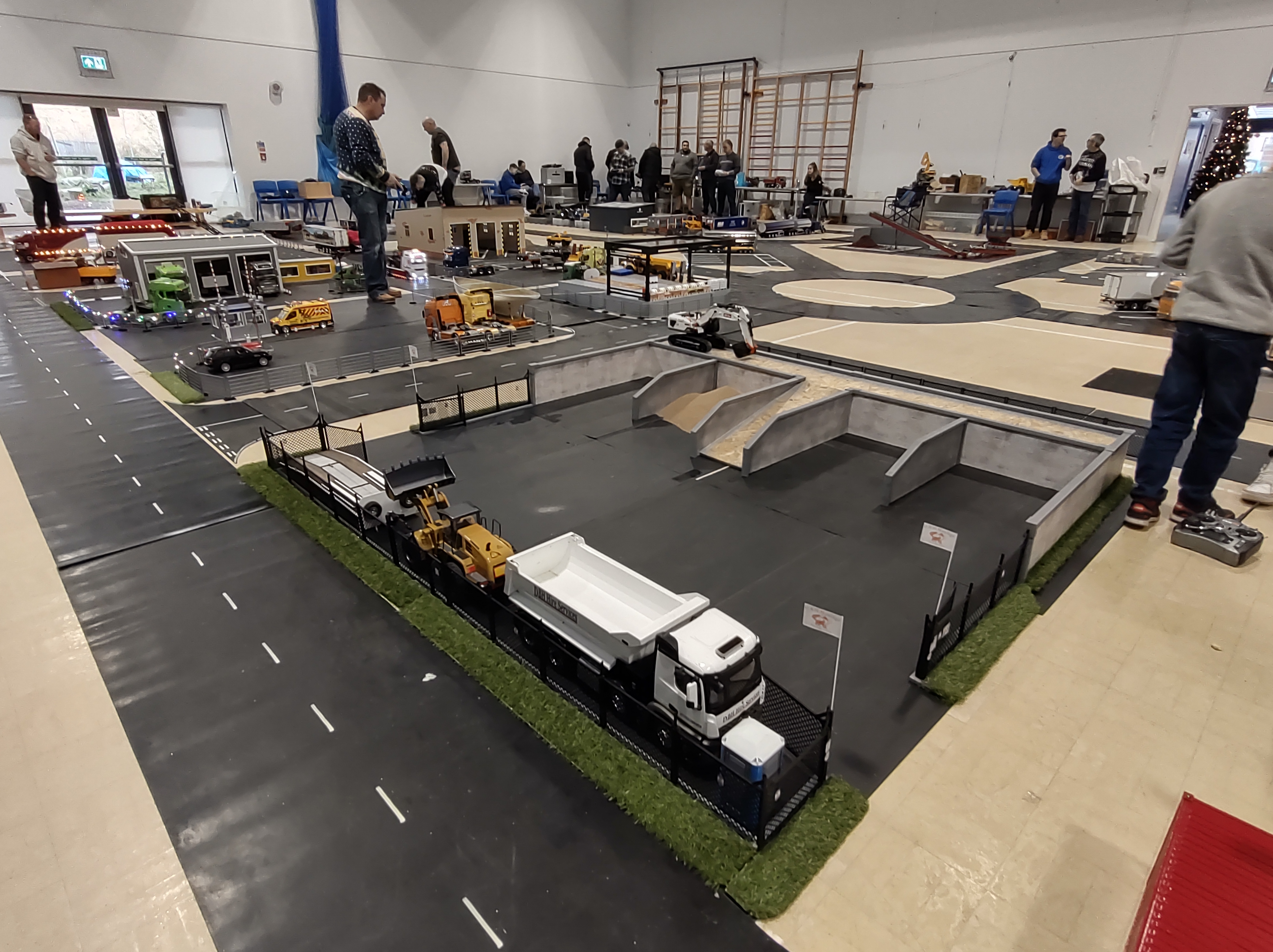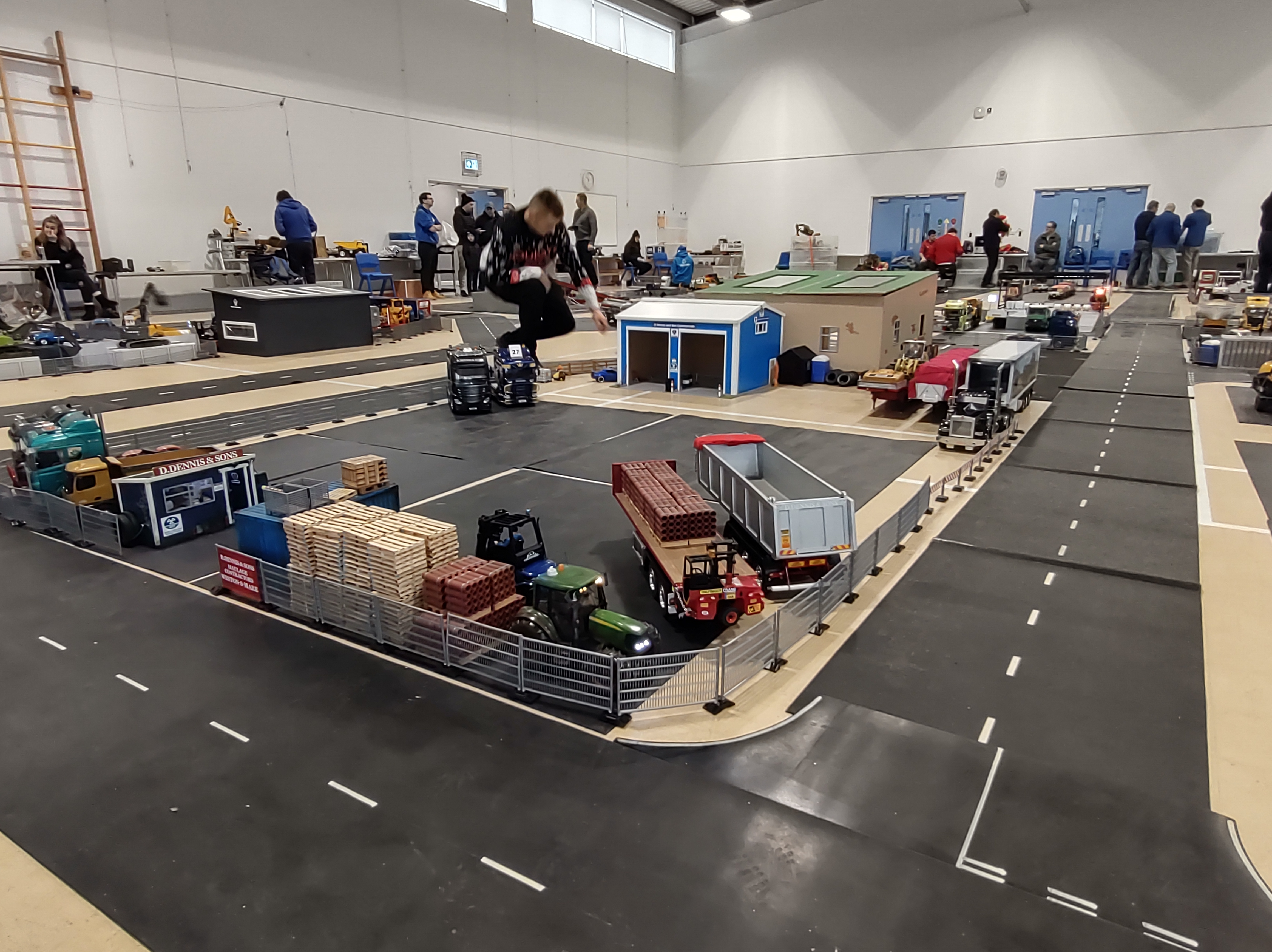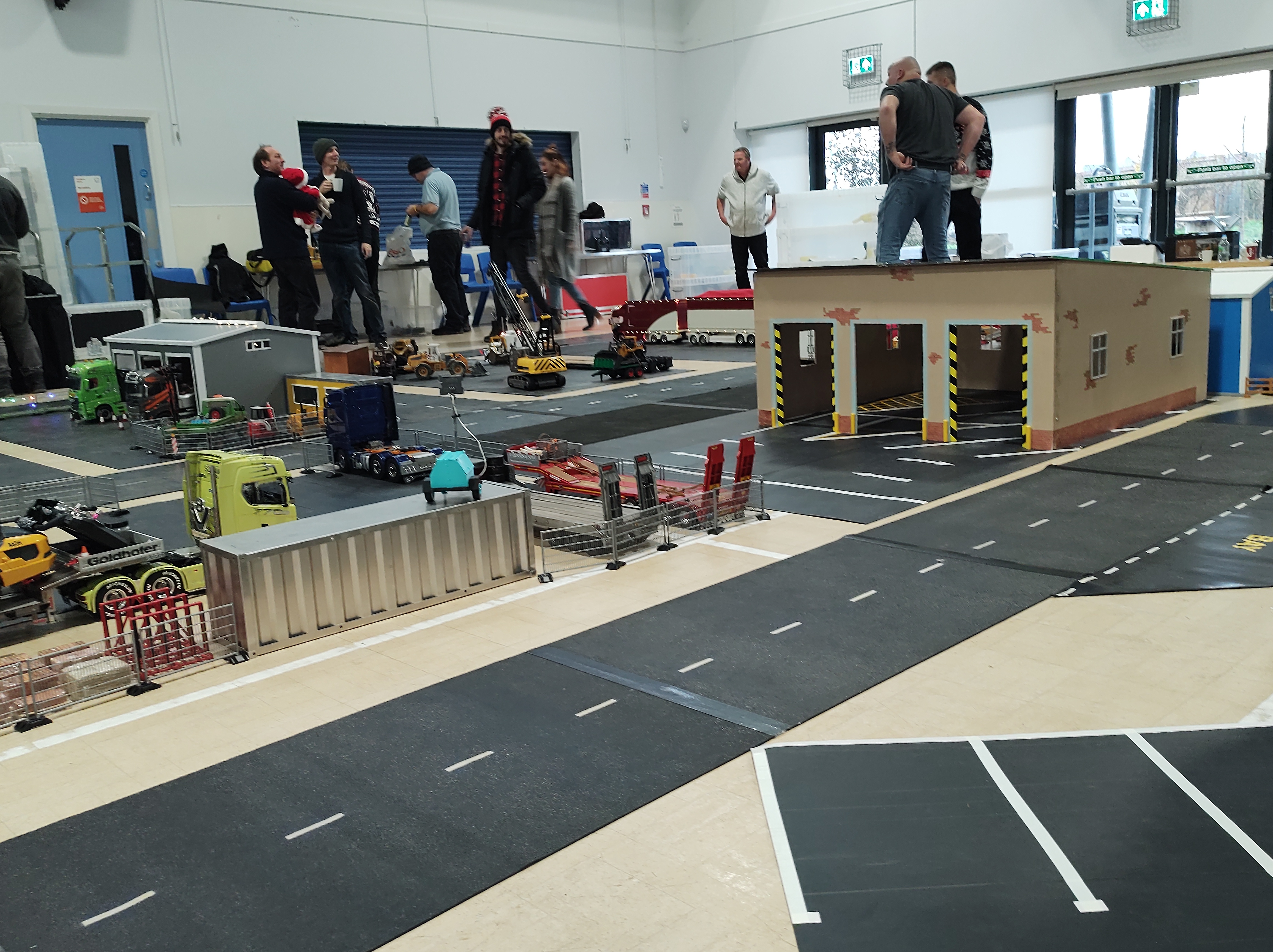 The layout this month featured a roundabout, we have had it since the beginning of the year but have not fully decided how to mark it up and connect to the rest of the layout. Time to have a try (marking out will have to wait until it is warmer). The flat layout created a more open layout and seems to have gone down well. By the way we could not have achieved this without the help of Rich Skuse Mike and Danny Brooks and Dan Evans helping with the layout. Since last time the club has invested in some different rubber, this is between 4 and 10mm in size and coloured. We did this so that everyone can use it (so long as they bring it back), we have 40kg so plenty to go round. Once again the hopper and conveyors were set out and open for everyone to use, A few wrinkles to sort but I did see a few people using them. I think we need a hopper to load the trucks though. I have some more cover material coming to extend the sides as they did spill a bit but worked really well with the rubber. Advice on how we lay this out would be appreciated.