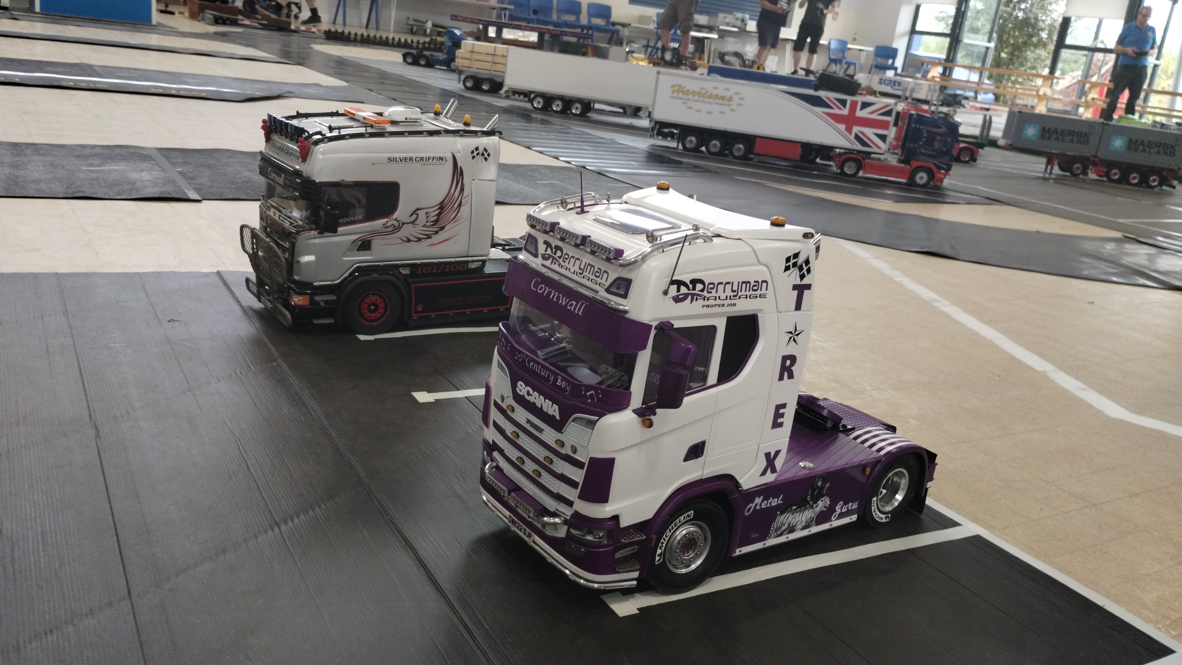 All that brings us to September. With Nicola and Stu on holiday we expected to be a bit busy for set up etc. A huge thanks to the people that turned up early and helped set up. Did you notice we had some gras out and a few hedges (first seen at Cornwall)? Oh and the dust on some of the track? We had planned a day to get together and wash the track off after Cornwall, unfortunately less than a few bits in and it rained. OK for cleaning but not OK for drying so we did not get very far. Apart from that all was OK. With a few other things going on (retro truck show at Gaydon etc) then we expected to be a little less busy. We have also had to raise prices for day members. As it happens we had more club membership renewals than drivers and only one junior day member.