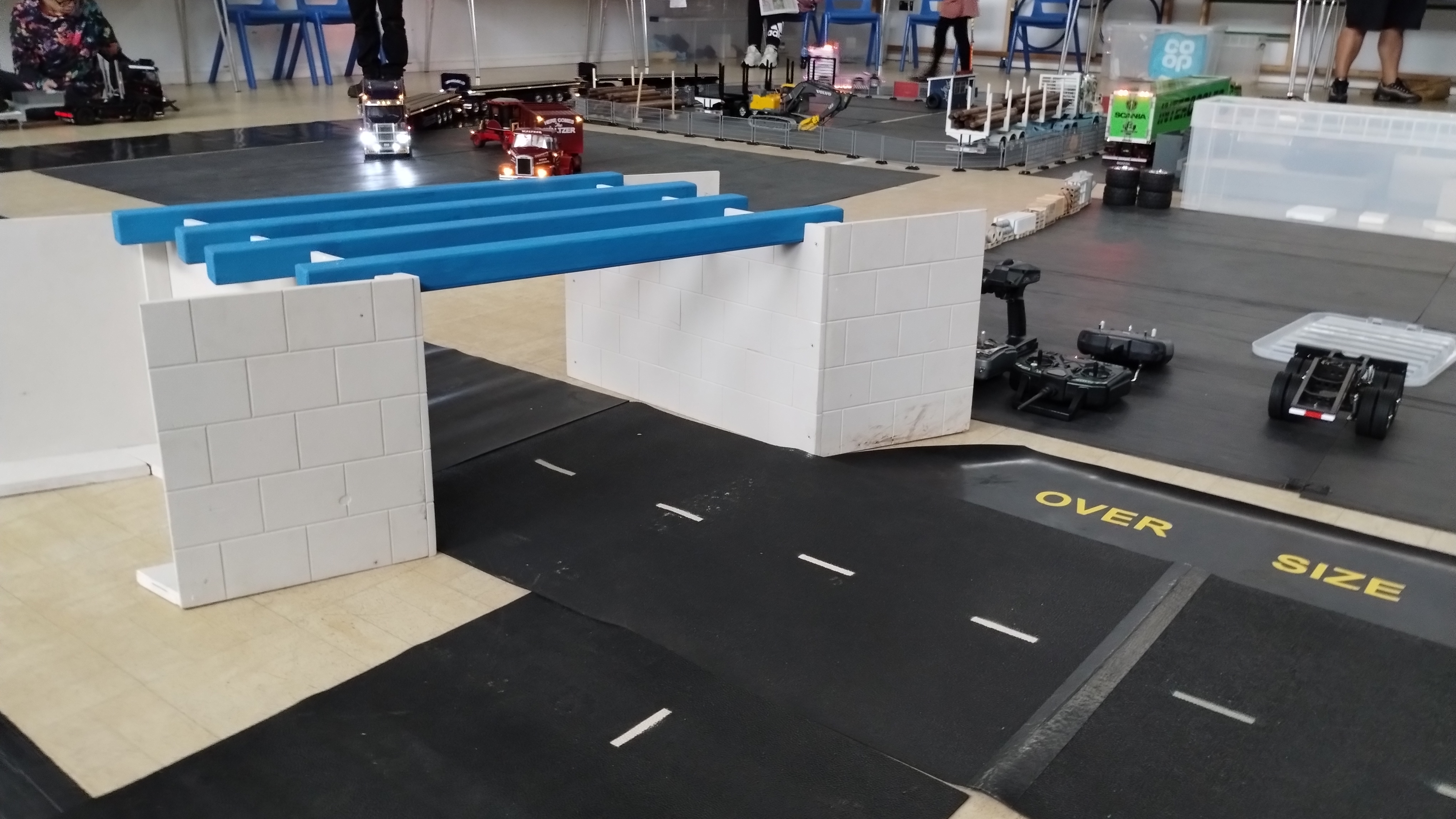 The last couple of meetings It has been mentioned that it would be nice to have a dual carriageway. In theory it is possible but in practice we would need more rubber, central reservation, road markings and junctions. We can do all that BUT we have no room in the trailer. A bigger trailer then, well I think we are at the limit with what we can do with a single axle unbraked trailer, so there is the biggest sticking point.