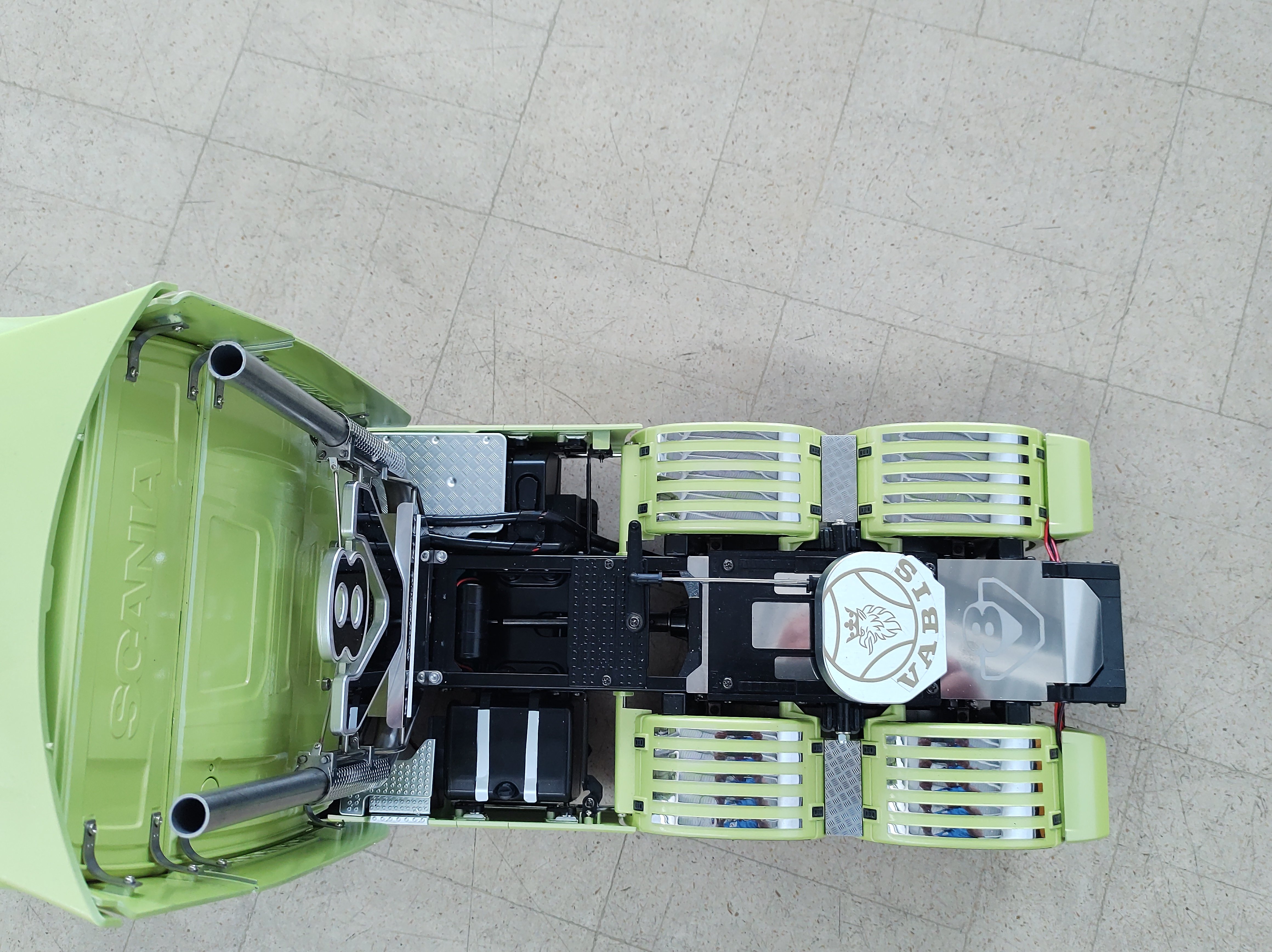 The truck packs a lot of extras with HH wheels, DMW tyres, exhaust stack, rear cover plate and fifth wheel plate. It is fitted with GT power lights. Other upgrades include a Carson motor, Lesu Bull bar and more.