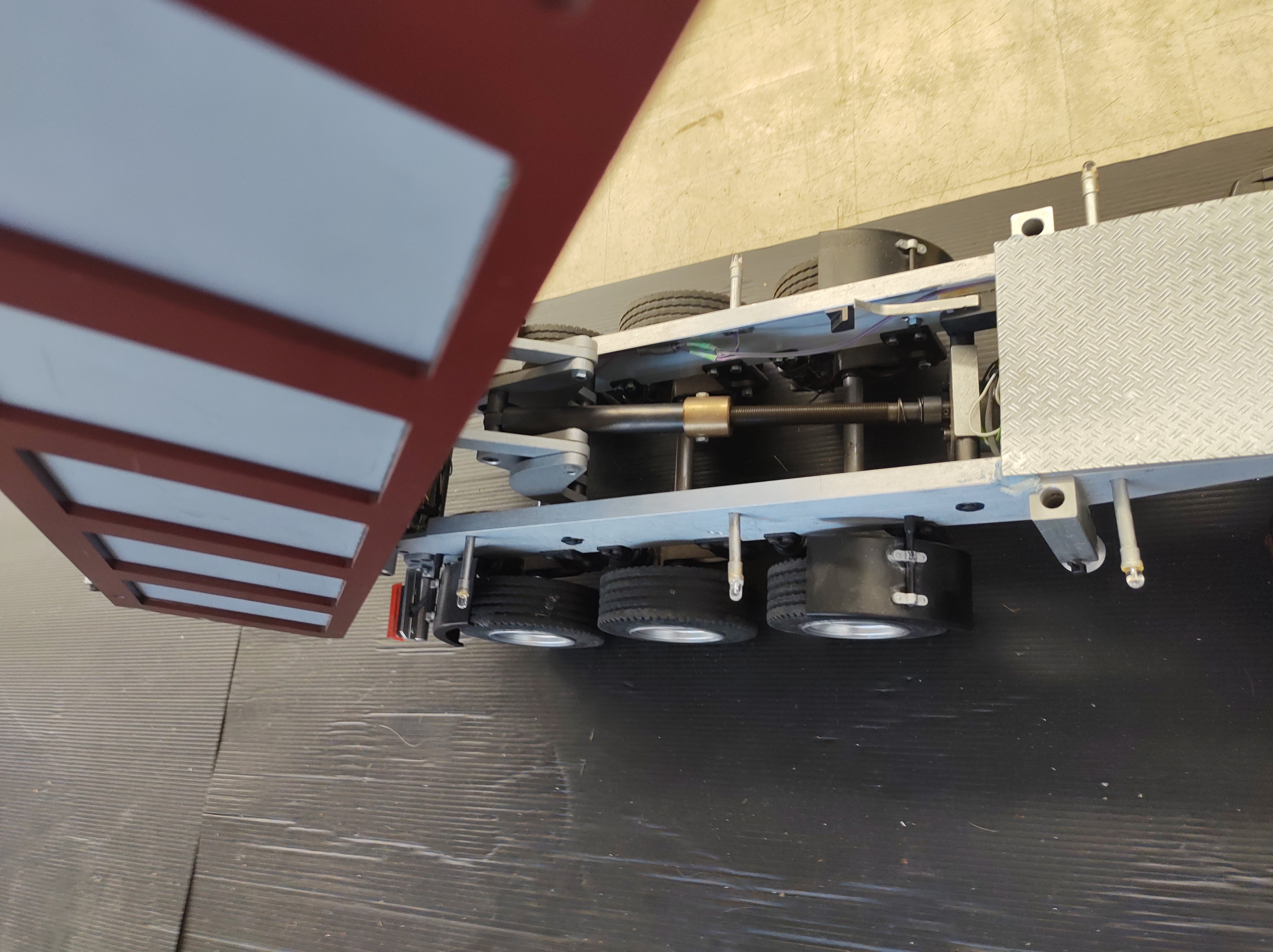 The trailer is one of the original Carson tipper trailers together with a Carson actuator. Originally this was driven by a separate battery and a second receiver (bound to the same model as the truck). The receiver basically ran an ESC for the tipper mechanism. A few years ago Barrie rewired the truck so that the trailer could be driven by direct connection via a number of plugs ( which can be seen in the pictures).