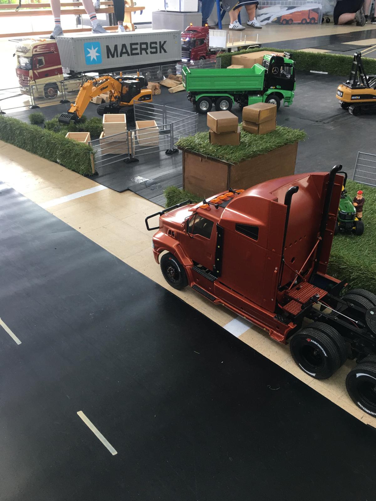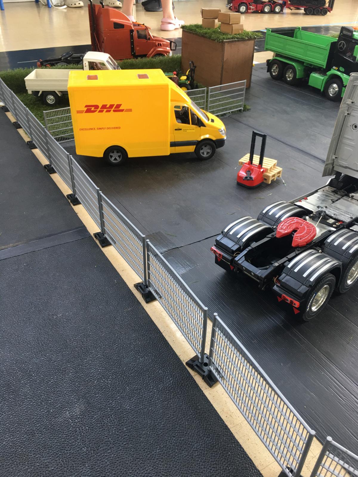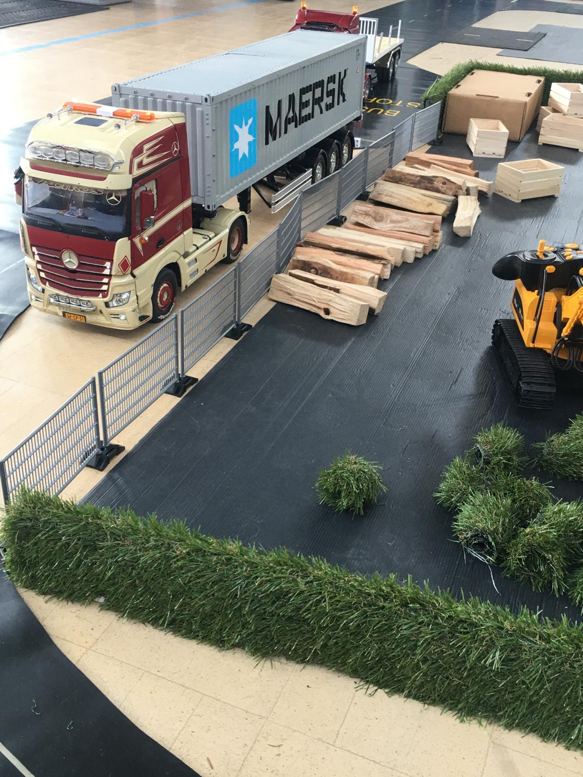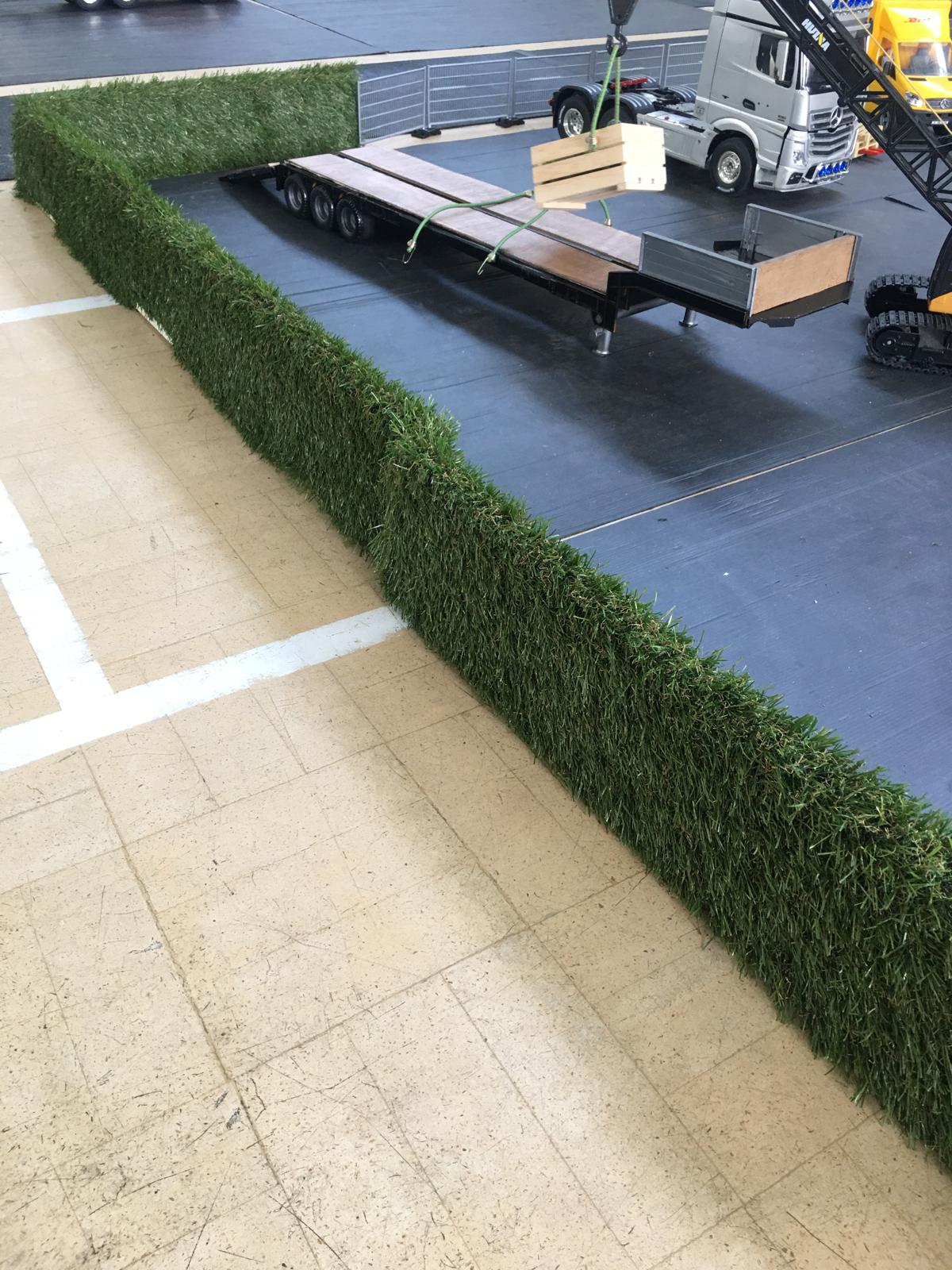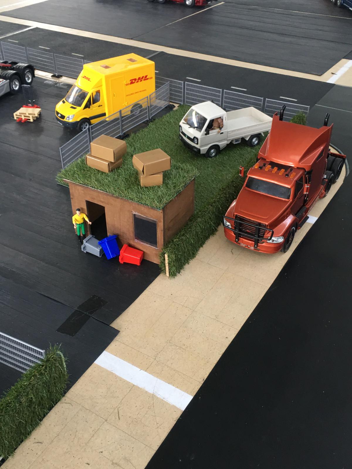 Considering that Harley only got his truck at Christmas his hobby is bowling along at some speed. You can see that the imitation grass has been made use of in a number of ways, hedges, roof of the eco gate hut, rolled as a load.
