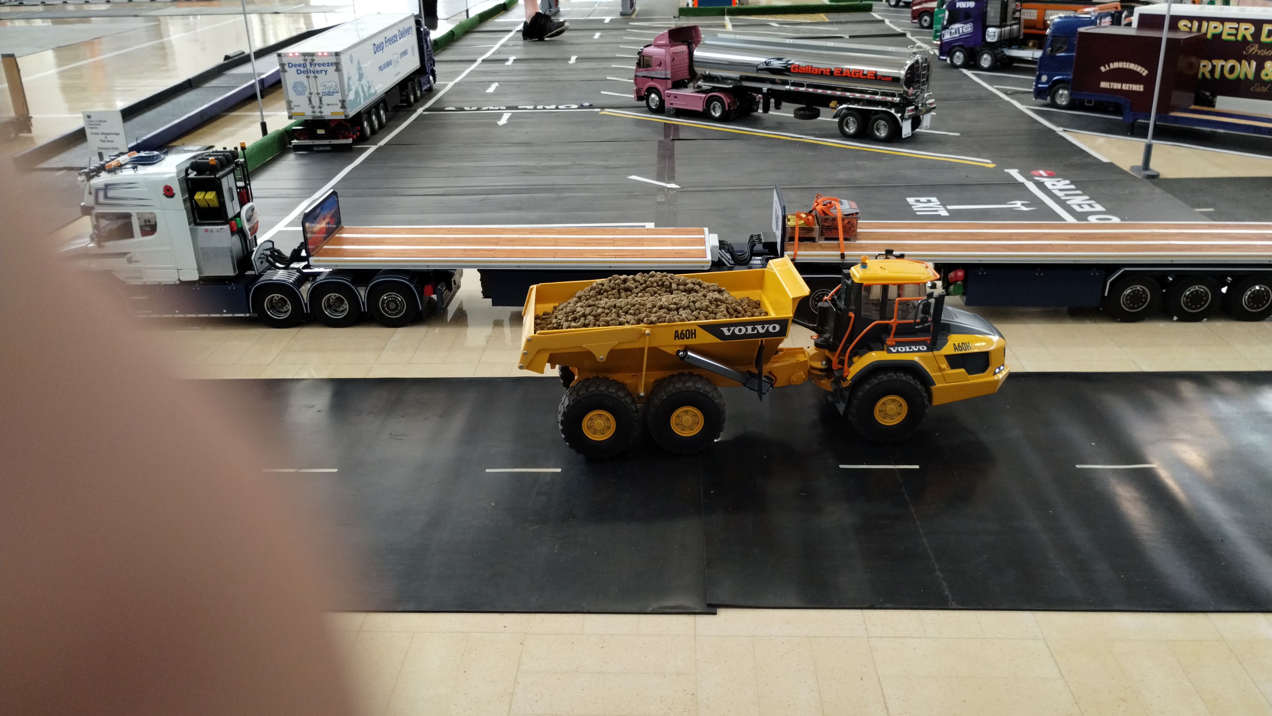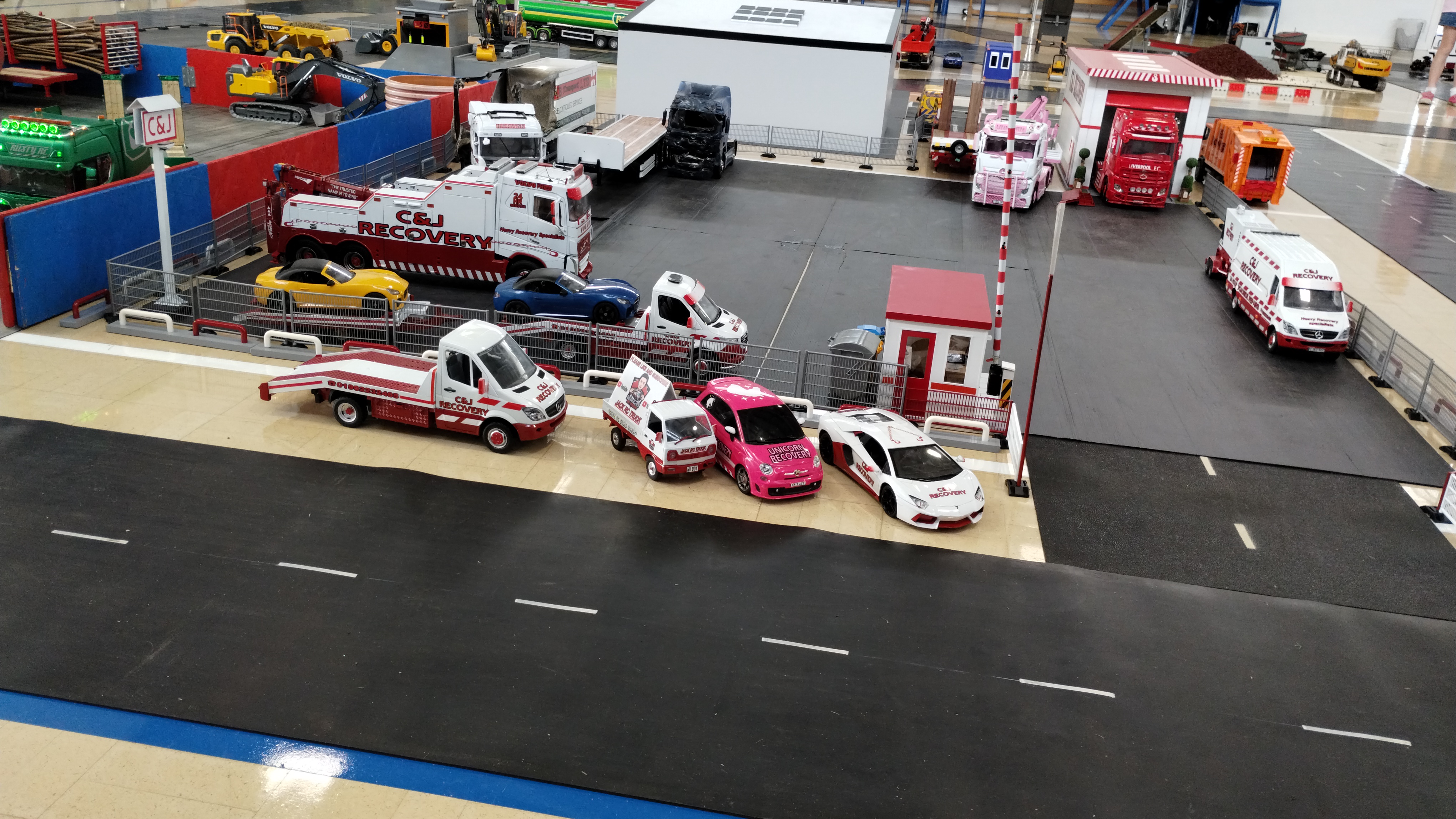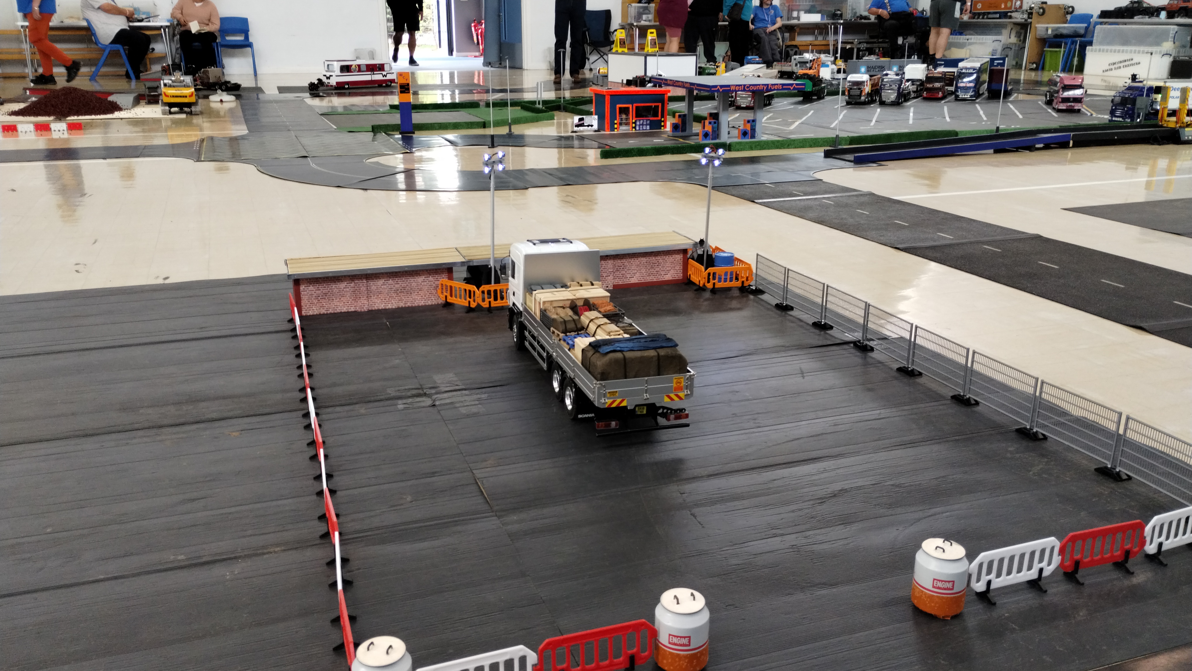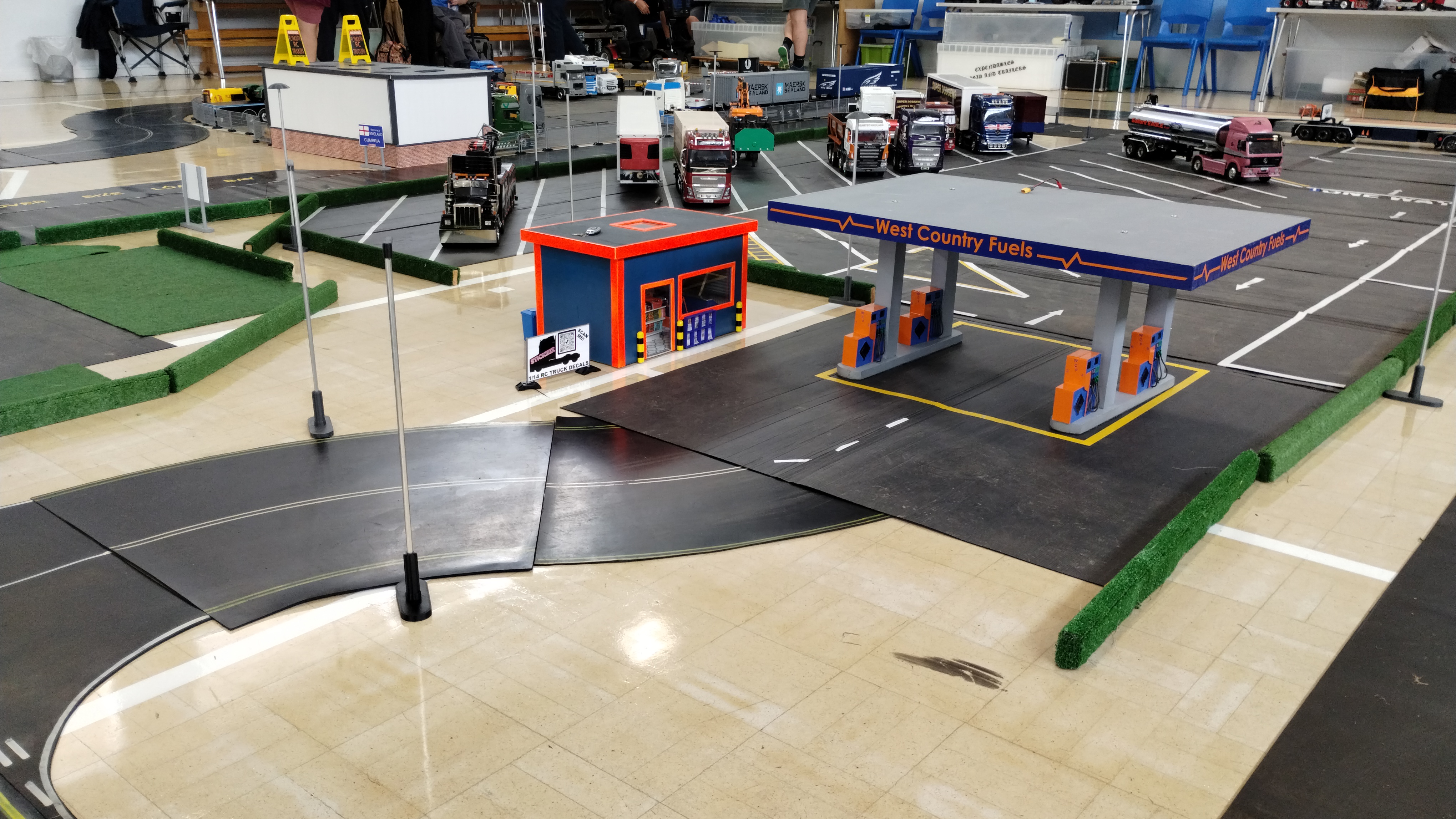So come the summer we had a bit to do. You will have seen some of it (e.g. the new box crossroads, snack van and various bits, silo tower etc). There is more in preparation but come September our biggest concern was the state of the roadway. We booked the hall for the Saturday but could not get in until 17:00. around 6 of us arrived with the track, layed out tables and washed the track outside, dried it, repaired bits, consigned some to the skip, marked it up so we know what's what. Inventoried it ( I must attend to that) and layed it out as close as possible to the layout. Sunday was normal but it seemed to take forever to get the layout done. Suffice to say that we were all shattered!
