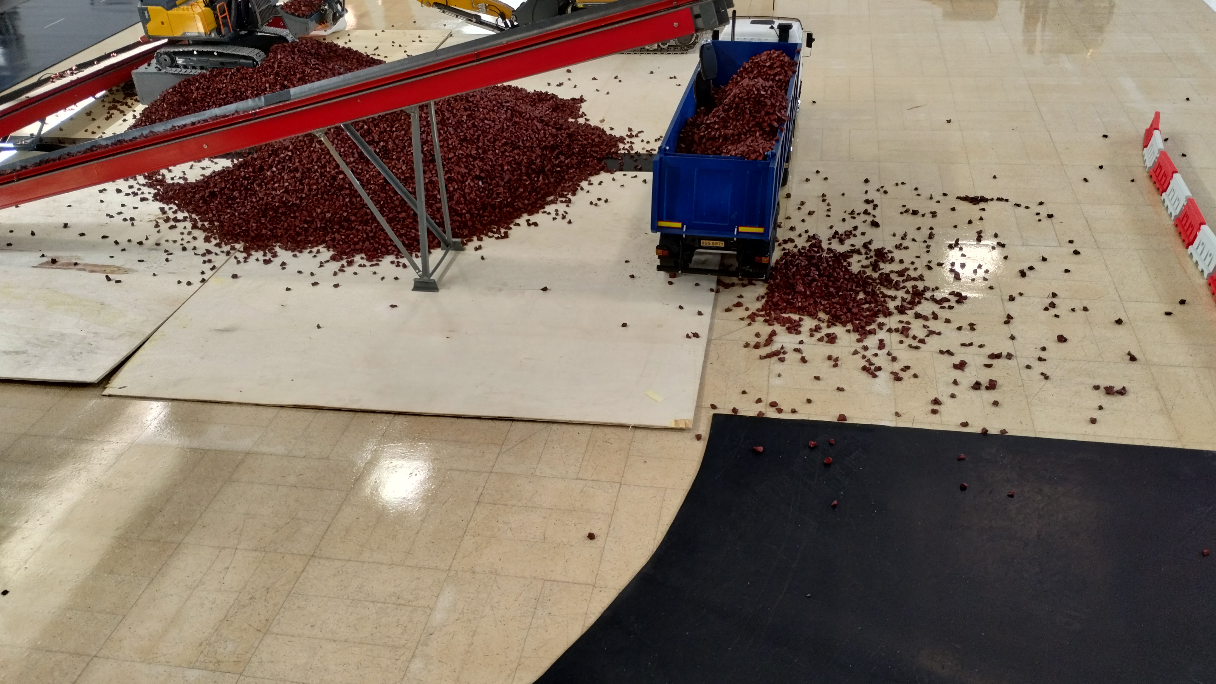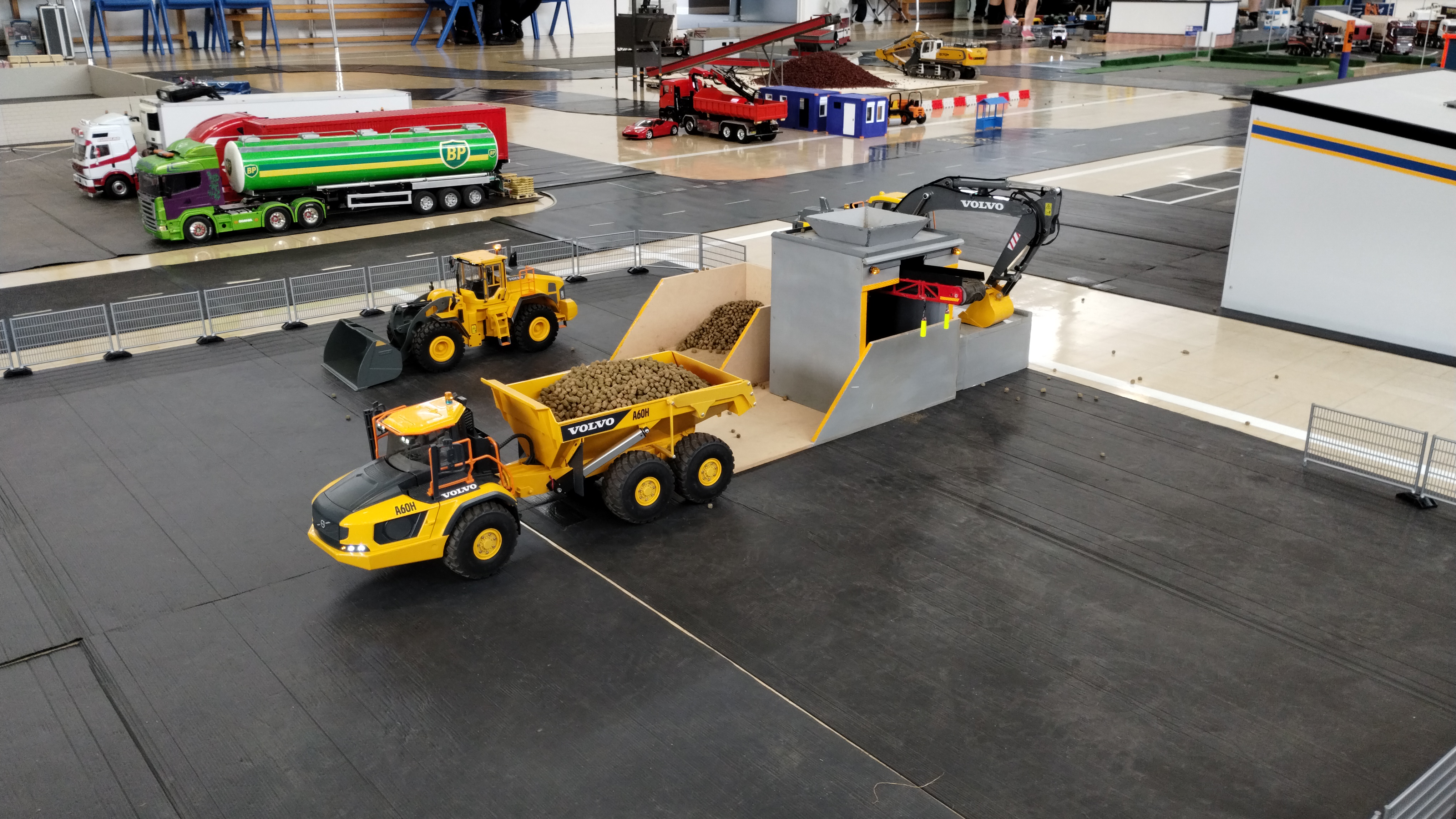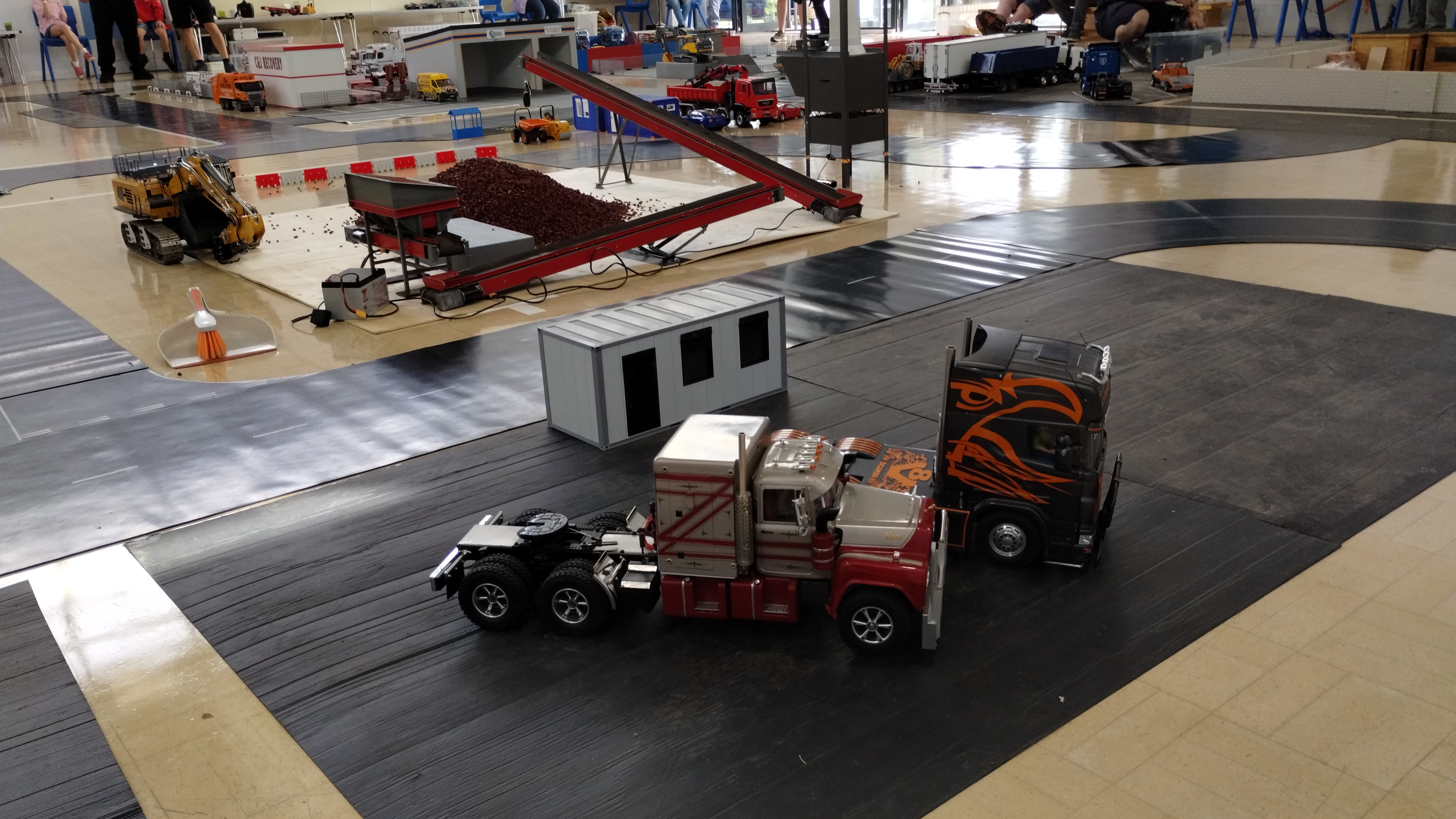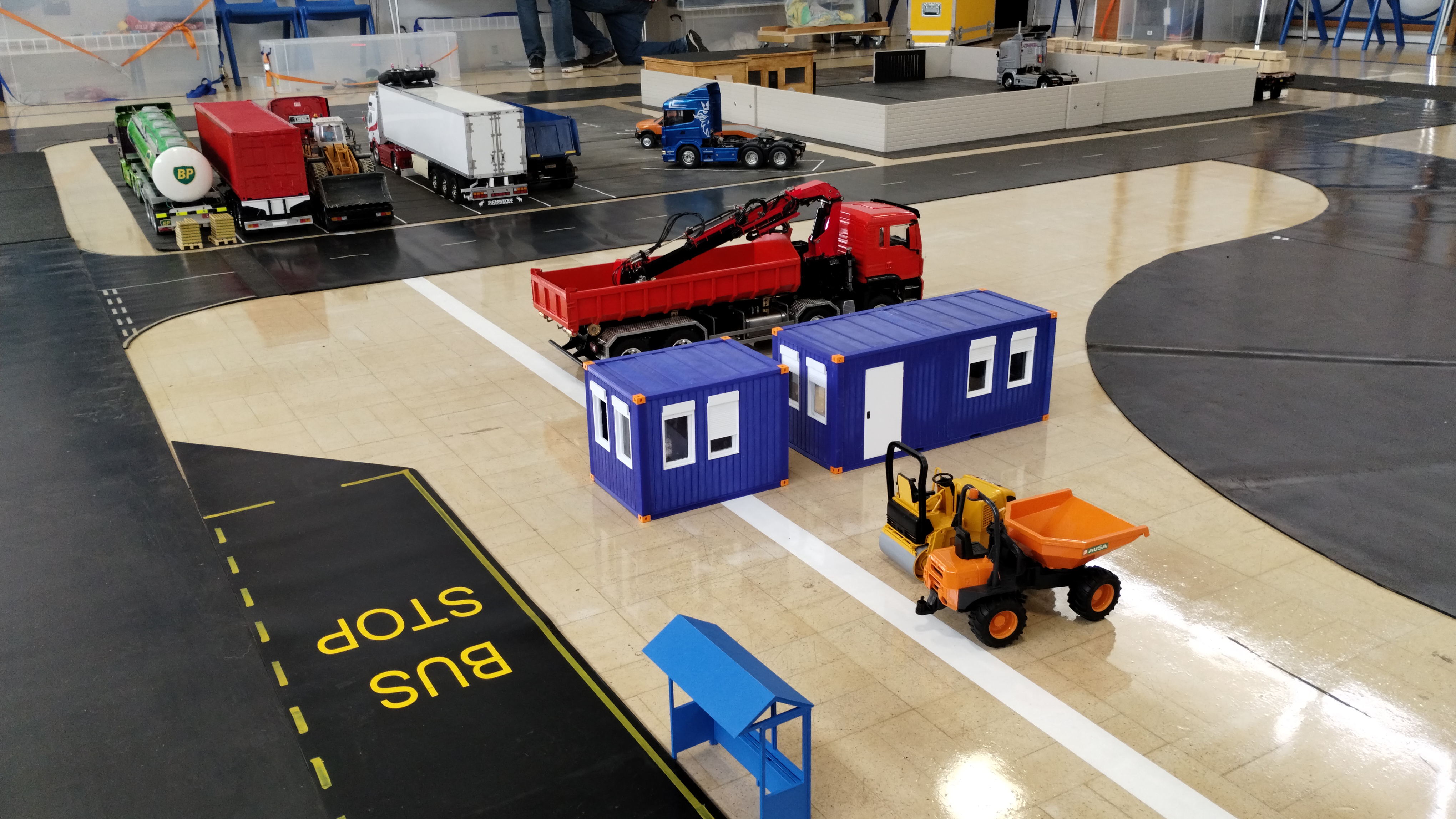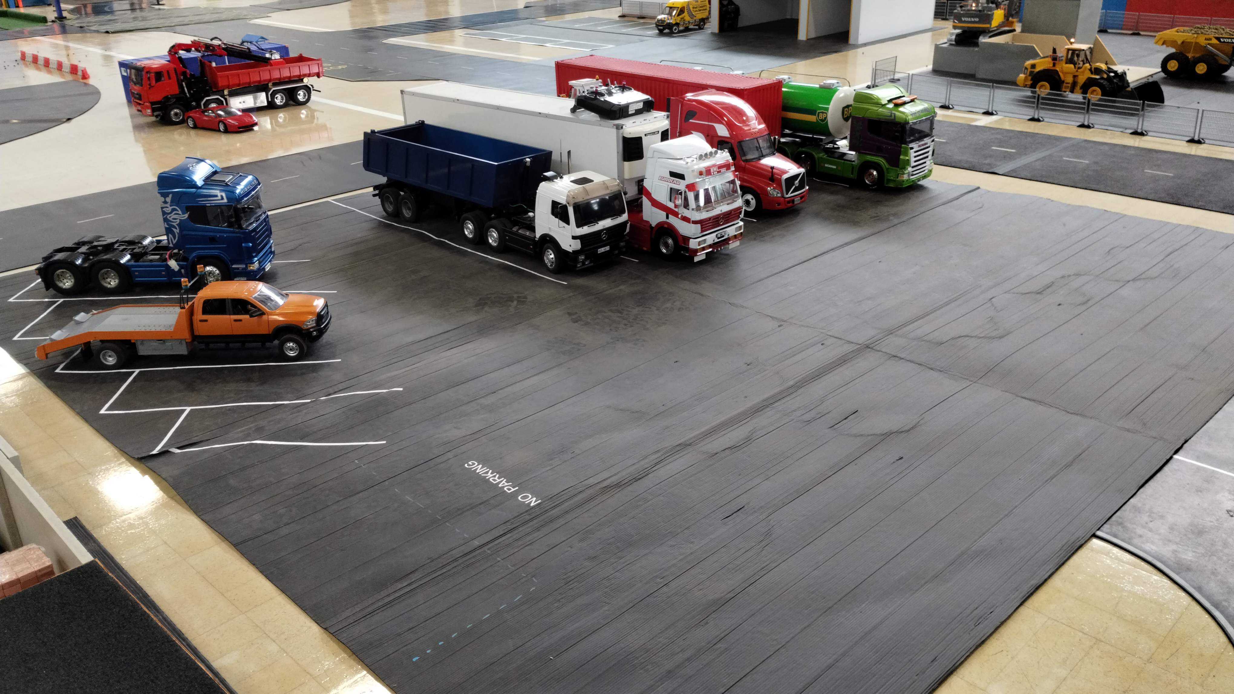 So come the summer we had a bit to do. You will have seen some of it (e.g. the new box crossroads, snack van and various bits, silo tower etc). There is more in preparation but come September our biggest concern was the state of the roadway. We booked the hall for the Saturday but could not get in until 17:00. around 6 of us arrived with the track, layed out tables and washed the track outside, dried it, repaired bits, consigned some to the skip, marked it up so we know what's what. Inventoried it ( I must attend to that) and layed it out as close as possible to the layout. Sunday was normal but it seemed to take forever to get the layout done. Suffice to say that we were all shattered!